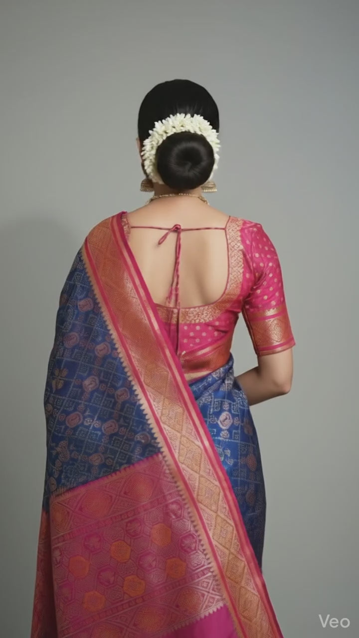 Royal Blue & Rani Pink Banarasi Patola Silk Saree