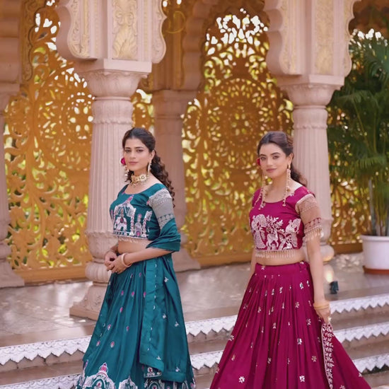 SILK BLEND LEHENGA CHOLI & DUPATTA SET WITH ELEPHANT & TEMPLE EMBROIDERY